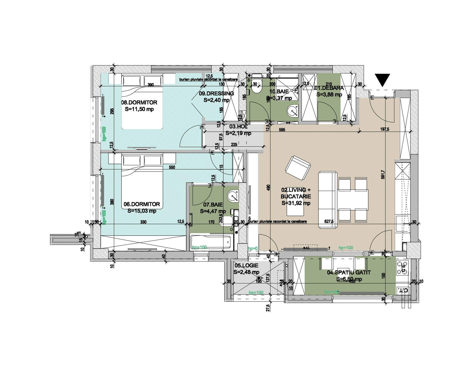 • Suprafata living&bucatarie: 31.92 mp