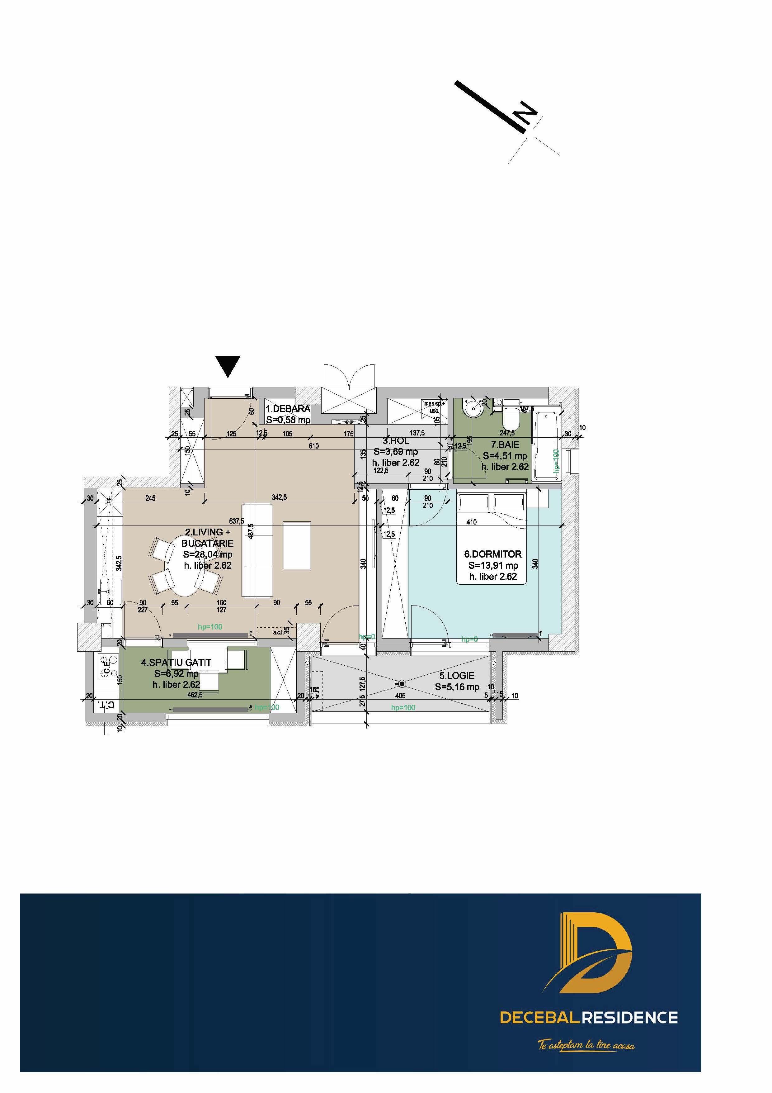- Suprafata living&bucatarie: 28.04 mp