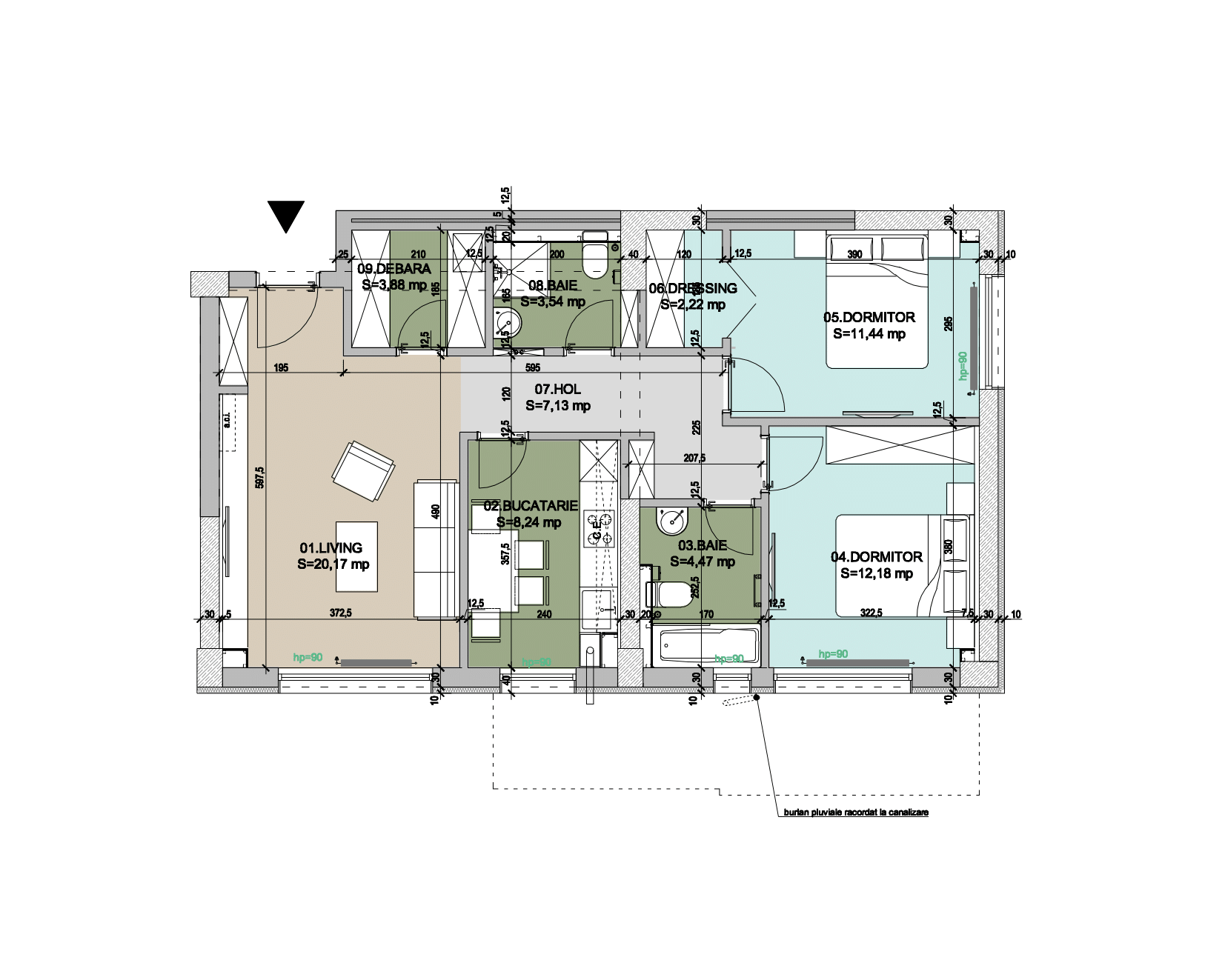 - Suprafata baie 2: 3.54 mp
